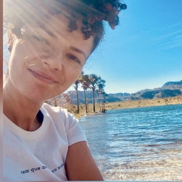 Identifica-se enquanto mulher negra não retinta, 40+, nascida no Cerrado brasiliense. Bióloga, trabalhou com agroecologia no assentamento do MTST em Cocalzinho de Goiás (2017–2019). Atuou com gestão de projetos em Educação Socioemocional e Cultura de Paz e formação de professores no Instituto Sidarta (Cotia, SP) em 2022. Atualmente é consultora de projetos socioambientais e pesquisadora em Mudança do Clima, Saúde Mental e Racismo Ambiental no Grupo de Estudos em Prevenção e Promoção de Saúde no Ciclo de Vida (GEPPS-Vida/UnB). Doutoranda no Centro de Desenvolvimento Sustentável (UnB), é Mestra em Recursos Naturais pela Universidade Federal de Roraima e em Psicologia Clínica e Cultura pela Universidade de Brasília. É coautora do capítulo “Mudanças climáticas, saúde mental e racismo ambiental: ameaças globais inter(des)conectadas”, no livro Psicologia e Relações Étnico-Raciais: Diálogos Interdisciplinares para o Presente-Futuro (2024). Disponível em: http://www.technopolitik.com.br/downloads/files/PsicologiaRelacoesEtnico-Raciais2024.pdf